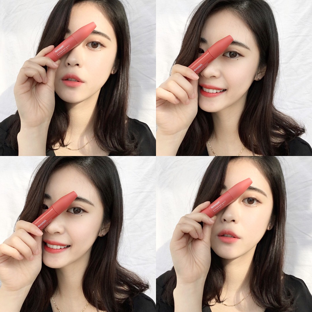 Ban đầu khi chưa thử, đọc tên Lip Tint mình nghĩ đến chất son mỏng, màu nhẹ nhưng khi swatch lên tay thì thấy 1 quẹt đã lên màu siêu rõ rồi nên khi dùng lòng môi mình chỉ cần di một đường mỏng rồi bặm là đủ. Cây này phù hợp với bạn nào thích son lì lì nhưng không bám quá chặt và lộ vân môi nhiều. Độ bám màu tương đối, son cũng có hương đào phổ biến ở các dòng son Hàn khác.